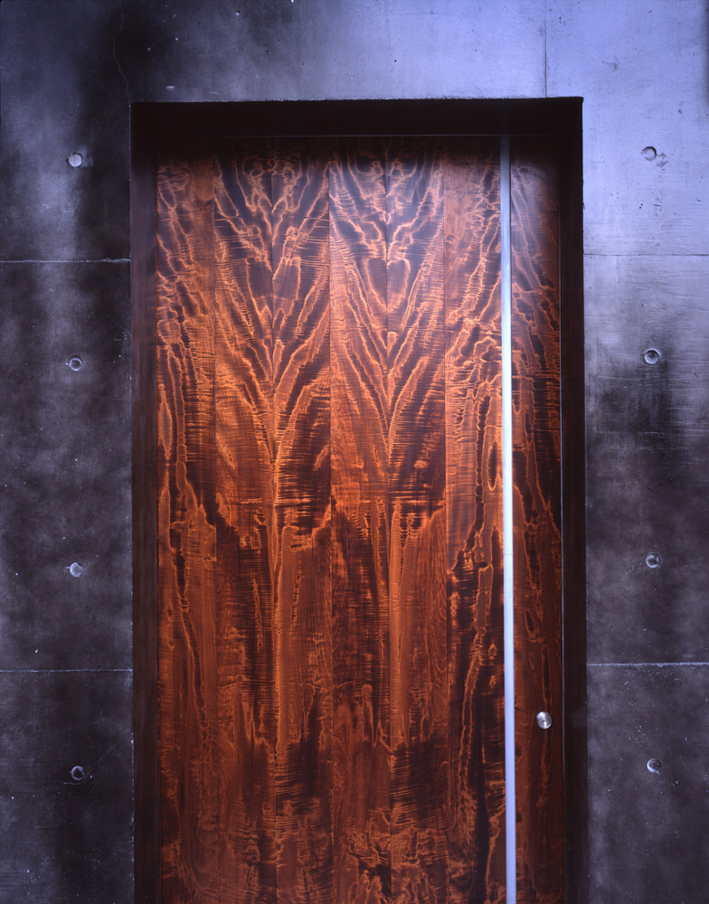 | 「おくゆかしい」という言葉があります。その奥にあるものに心を惹かれ、もっとその先を知りたい、そんな意味だと思います。これを漢字で書くと「奥床しい」。すなわち襖を開けて奥へ奥へと入って行って何かを発見する訳です。Nw邸は、僅か43m2(13坪)の敷地に建つ5層の床を持つ狭小住宅です。平面的に奥へ奥へは無理なので、上へ上へと進むうちに、親密で魅力的な空間が現れる、そんな「奥床しい」住宅を目指しました。 玄関を入ると、1層目は来客の為のスペースを兼ねた山吹色の音楽室、次は読書スペース、第3層は子供とのコミュニケーションを考えた寝室・浴室、第4層のとても高い天井の家族の為のリビングルームは、敷地の面積からは到底想像出来ない解放感と明るさです。さらにガラスの扉を開けて、パンチングメタルで出来た浮遊感のある階段を上ると、最上層には究極の親密さを示す茶室が現れます。実はNw邸、こんな風に、音楽室(兼ゲストルーム)から茶室まで、親密さのグラデーションを設定する事で、家の敷居を低くしてゲストを迎え入れ、深窓ではゆったりとした寛ぎを確保出来るように考えたのです。段々と地域のコミュニティが失われていく今日、住宅の機能として必要ではないでしょうか。 さて、こんな奥床しいNw邸も夜になると一変、通りに面した7つの窓から和紙を透して、7つの日本色を放ちます。とてもとても小さなNw邸が「艶やかな家」としても人の記憶に残る為に。 追記 Nw邸では、施主の趣味もあり様々な材料、仕上げを試みています。外壁コンクリートの斑模様の黒色塗装、杢模様の美しい栃の扉、栗、水目桜のフローリング、杉板型枠を用いたコンクリート打放し、山吹色の壁、天井、松墨を混ぜたクリア塗装、音楽室への扉や読書スペースの床に用いたハニカム構造のFRP、これらの材料もまた、Nw邸のアイデンティティを表す大きな要素でしょう。 |